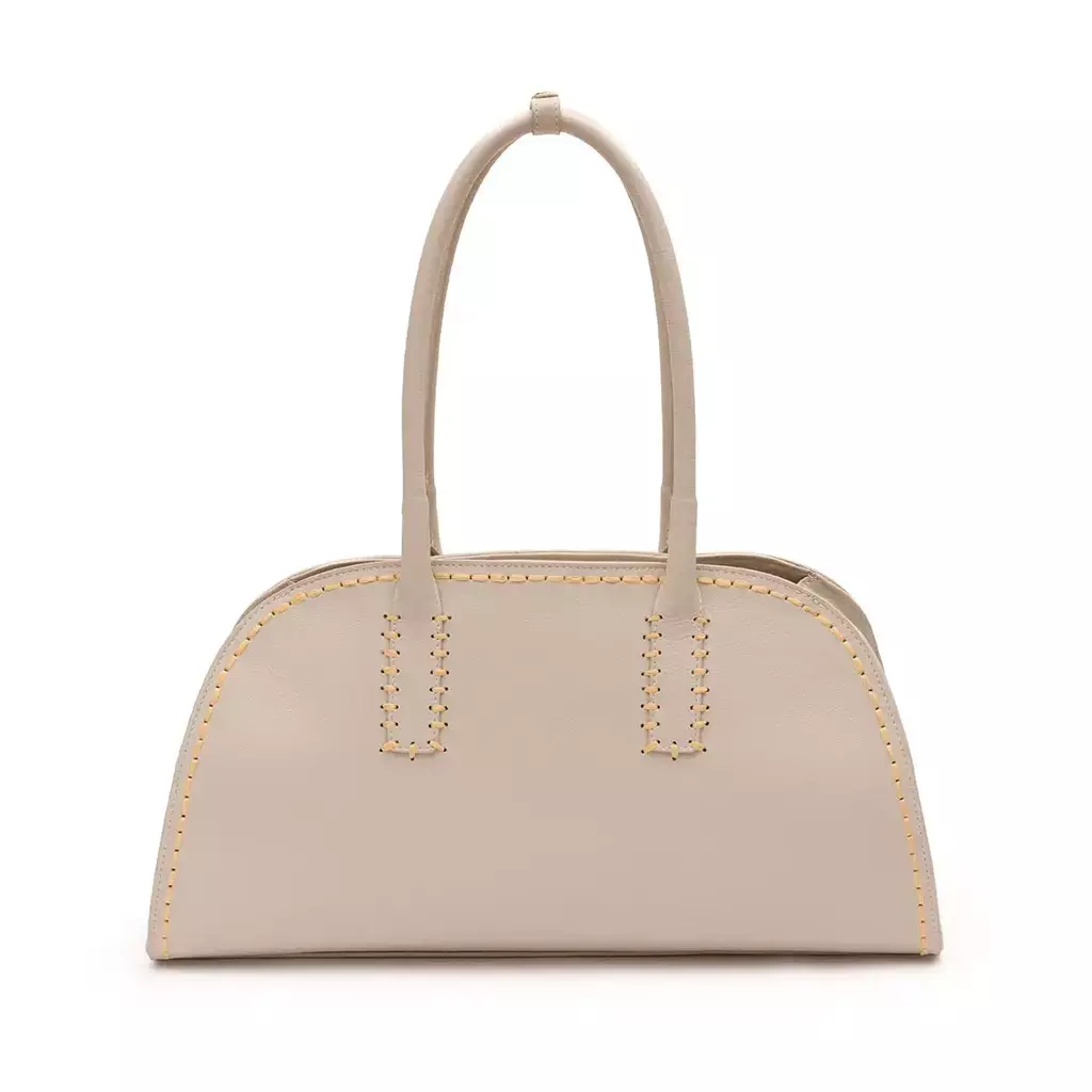 A alça em rolotê, finalizada com enfiados em ráfia, destaca o cuidado nos acabamentos. O fechamento por linguetas com ímã garante segurança e funcionalidade, enquanto o cinto lateral com ajuste por carrapeta permite expandir o espaço interno de acordo com a rotina.