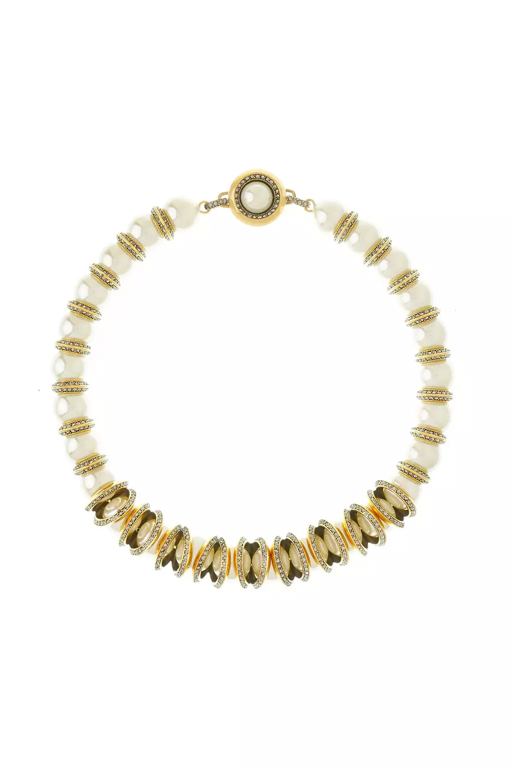 Coleção Timeless - Drop Sirius Inspirada na estrela Sirius, a mais brilhante visível a olho nu, a coleção aposta na leveza como potência. Os aros ganham protagonismo, transformando os espaços livres em elementos centrais. Já as pérolas adicionam um toque clássico e trazem pontos de luz, como pequenos astros que orbitam pelas peças. O Colar Curto Pérolas Sirius foi produzido artesanalmente, aplicando as técnicas da joalheria, no banho Ouro Vintage, com cristais cravejados manualmente. Tamanho 42 cm aberto